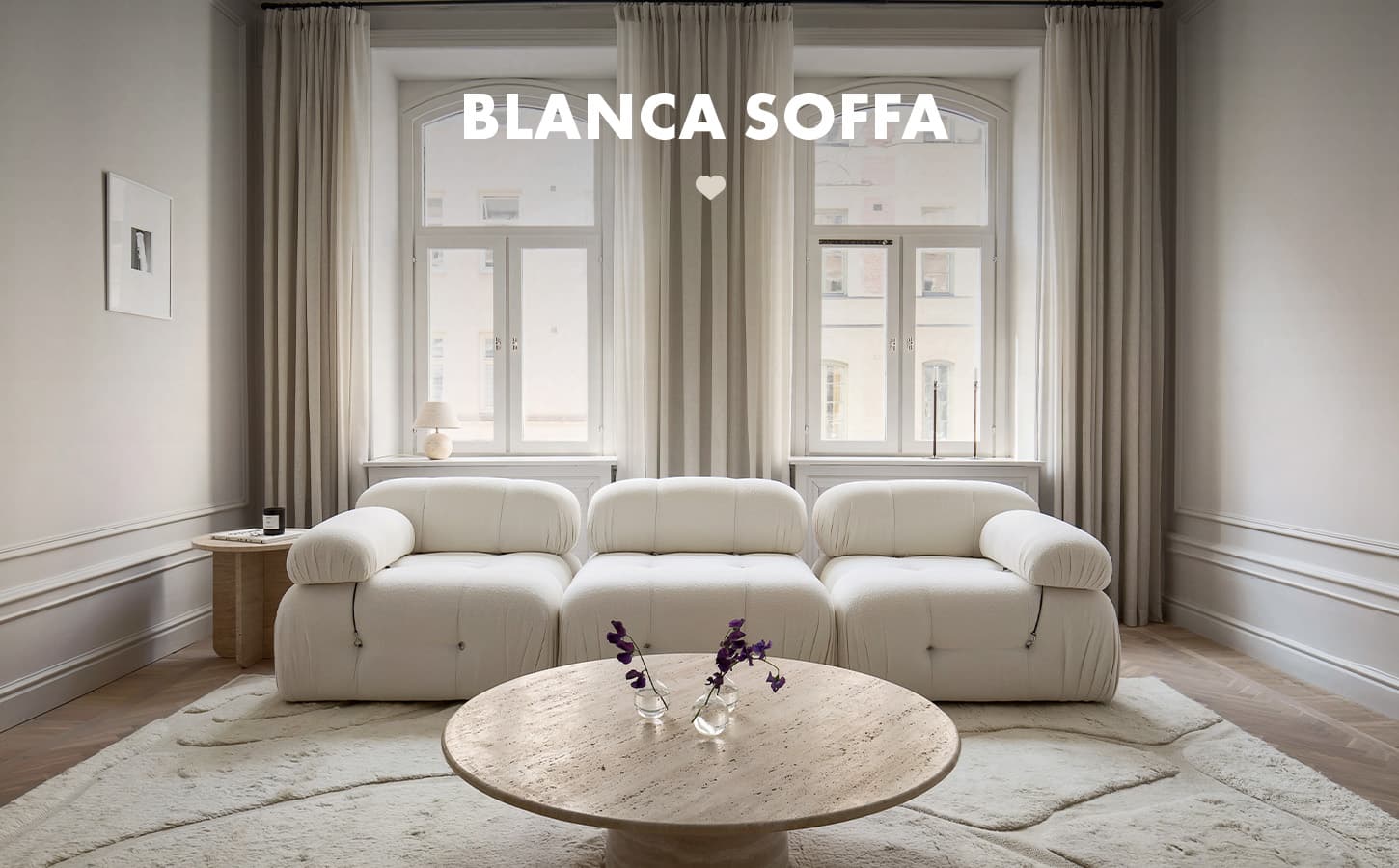 Vår populära soffa Blanca har nu kommit i en helt ny färg, vit bouclé!