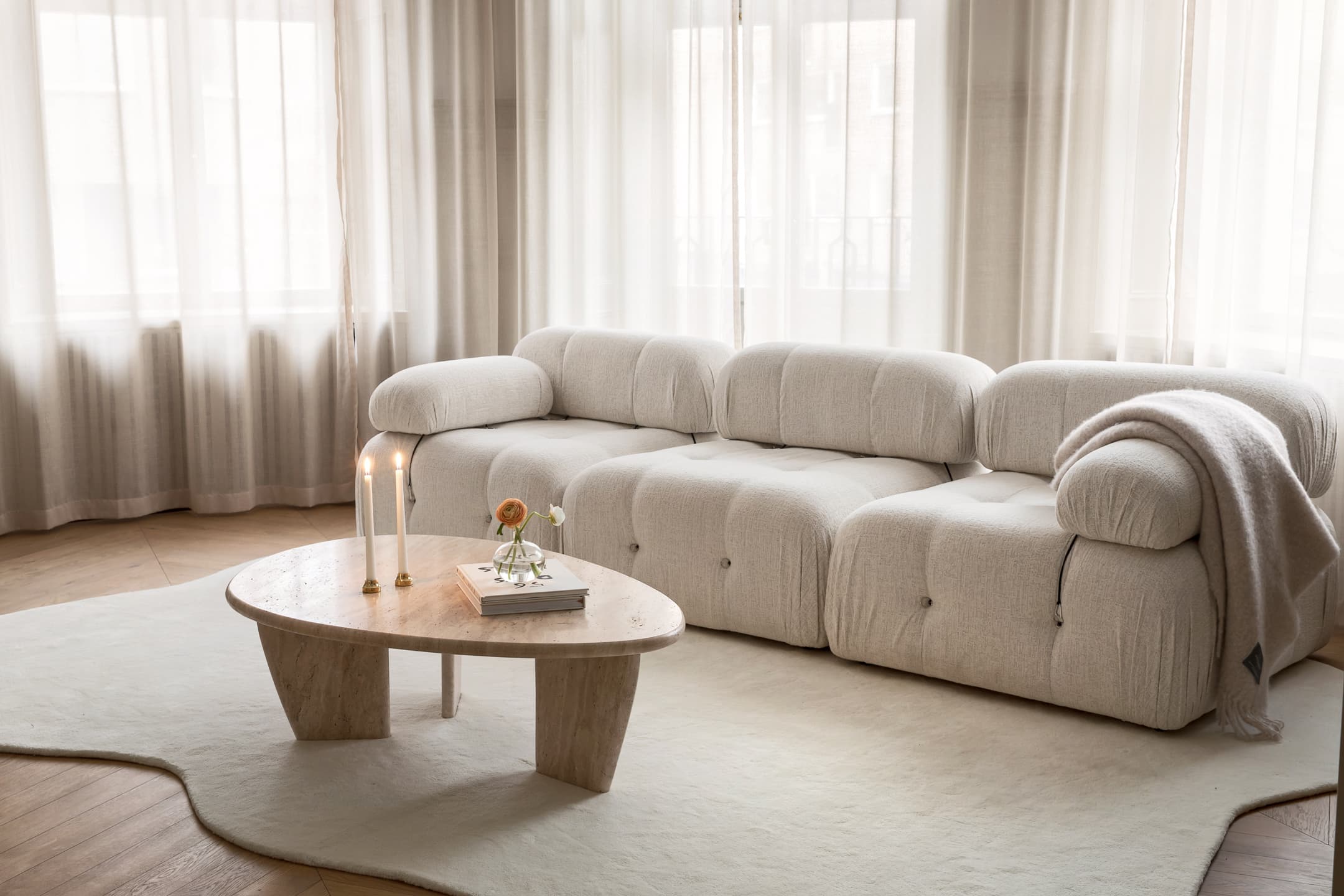 Vår kära modulsoffa Blanca kommer i flera olika färger och moduler så att du kan skapa din drömsoffa precis så som du vill ha den. Den finns för tillfället i färgerna forrest, velvet beige, cream & white bouclé.