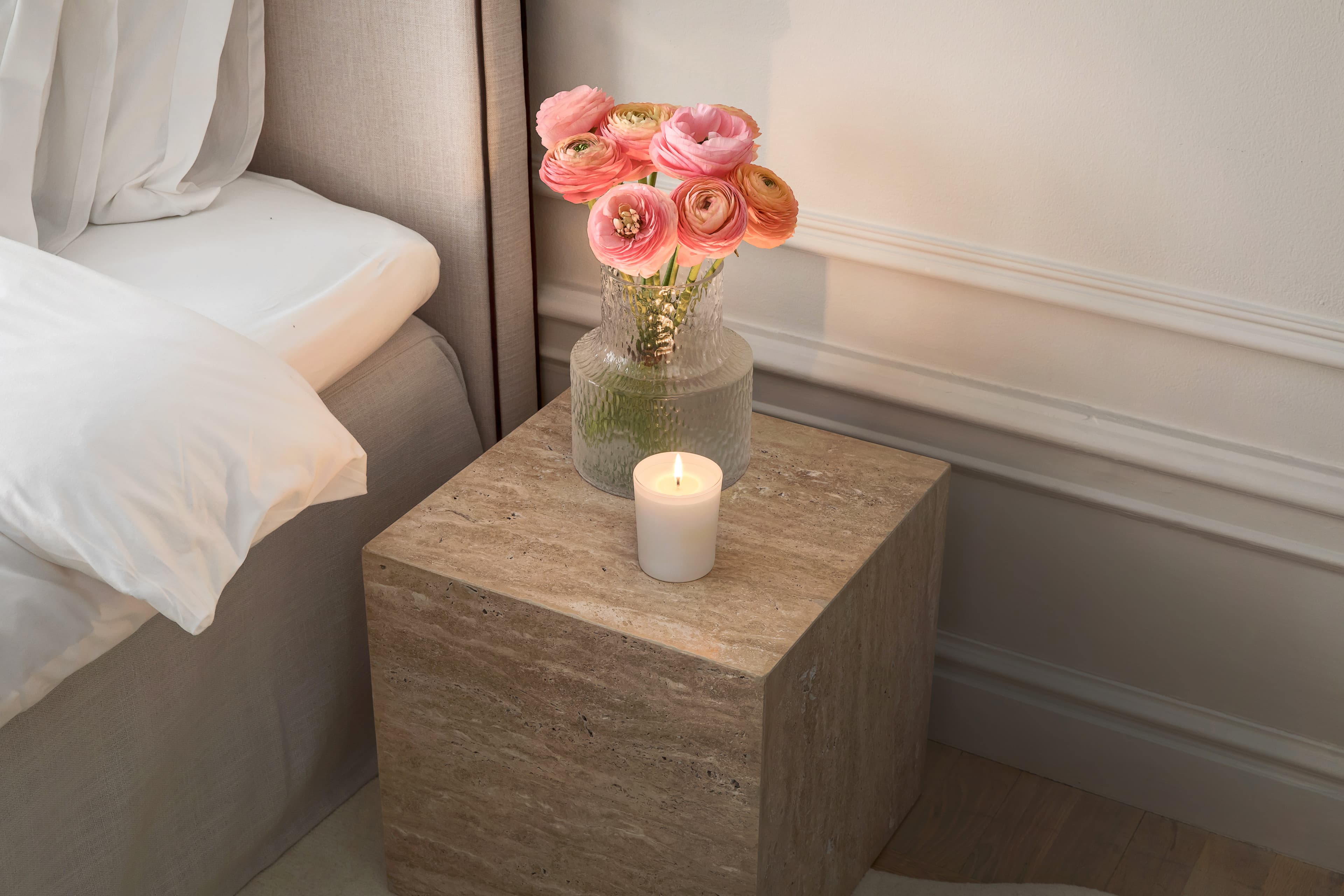 Tilly är ett sidobord i vacker travertin sten. Bordet har en fyrkantig form med tydliga kanter och hörn. Det stilfulla travertin-materialet skiftar i nyanser av beige, sand och naturvitt som varierar från bord till bord. Kombinera gärna med soffbordet ur samma serie.