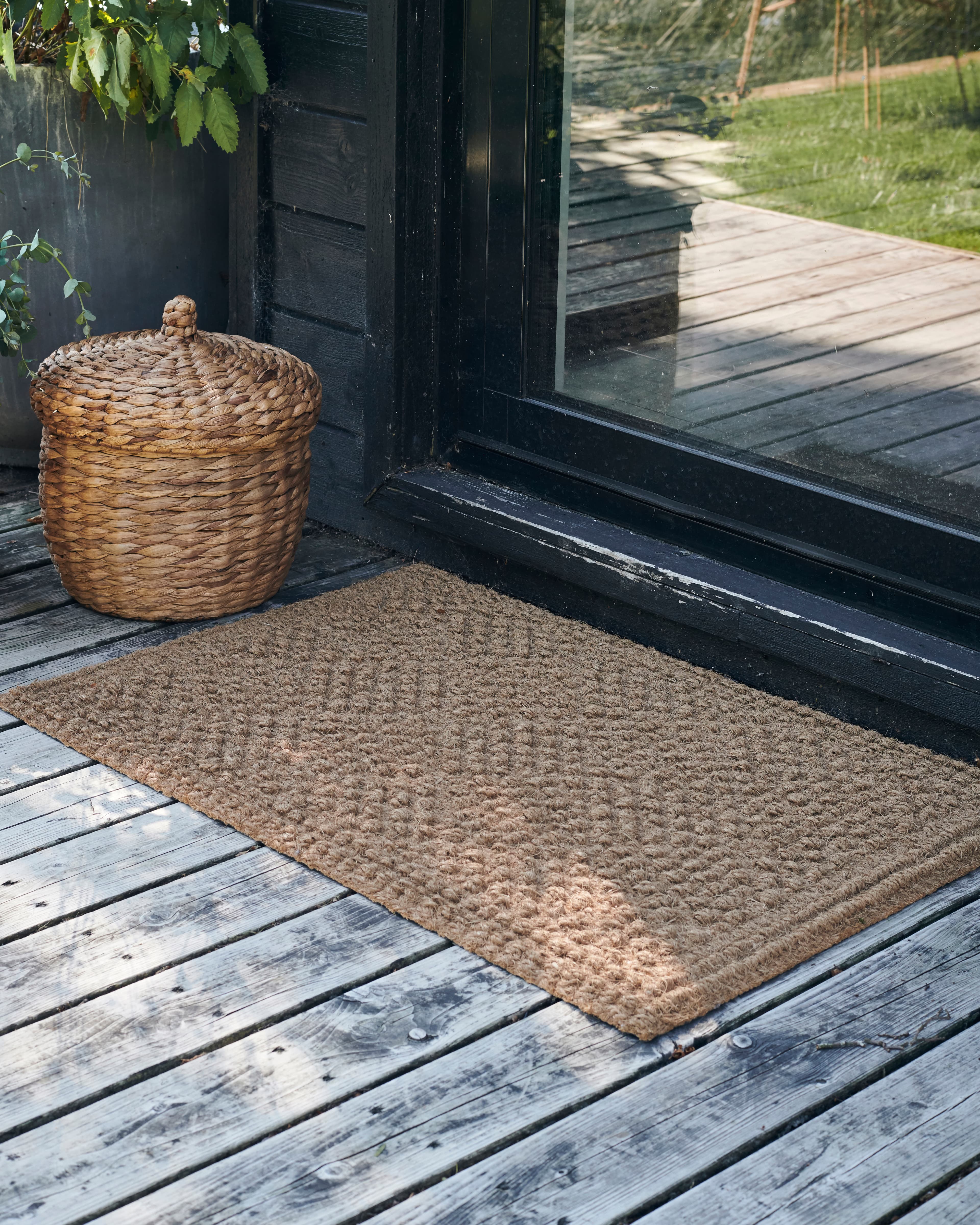 Det beror på var du ska placera den. Jute och textil fungerar bra inomhus, medan gummi eller kokosfiber är tåliga val för utomhusbruk.