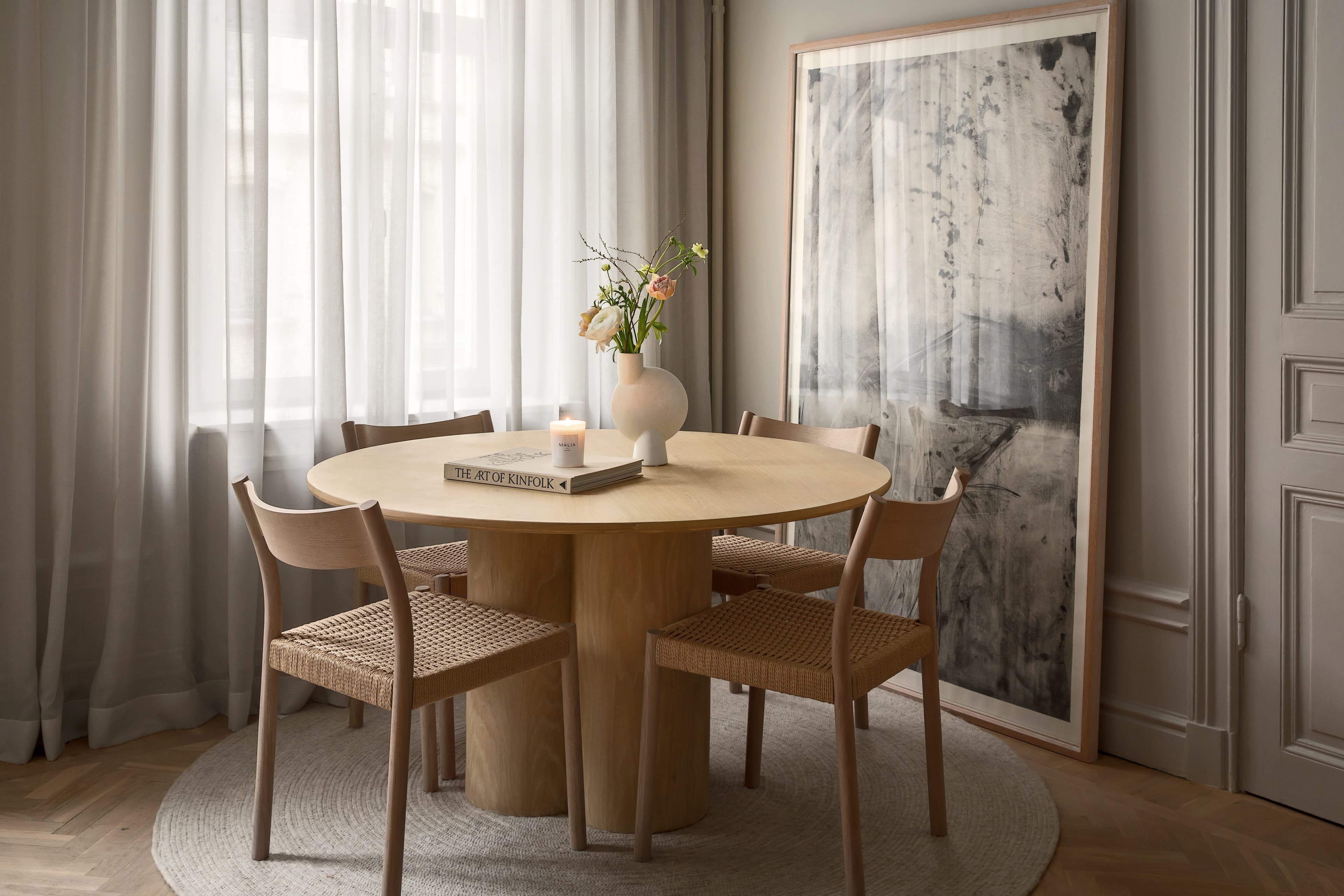 Tips: Matcha ditt runda matbord med skandinaviska matstolar och en rund matta