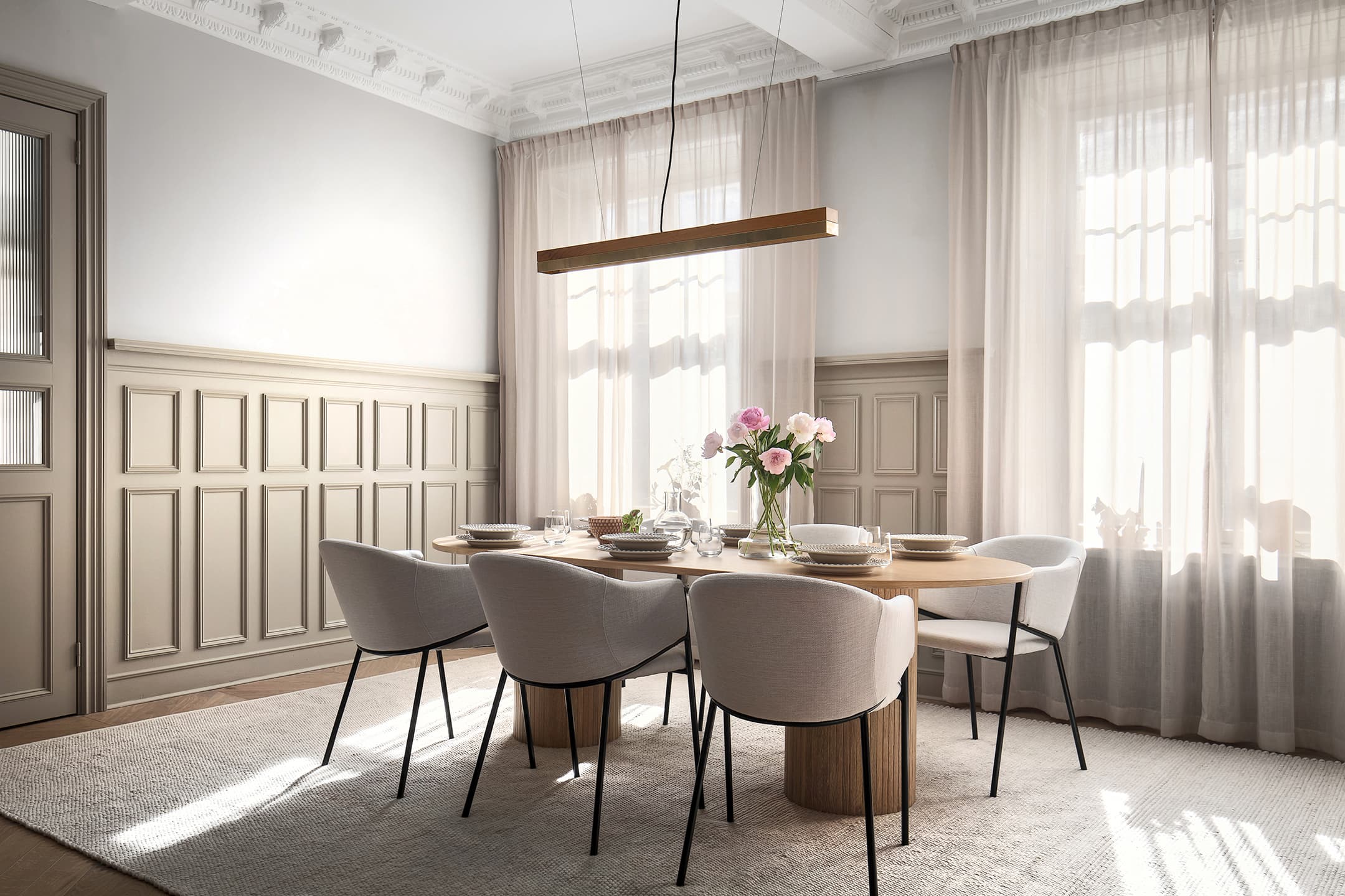 Skandinavisk stil med vita matstolar