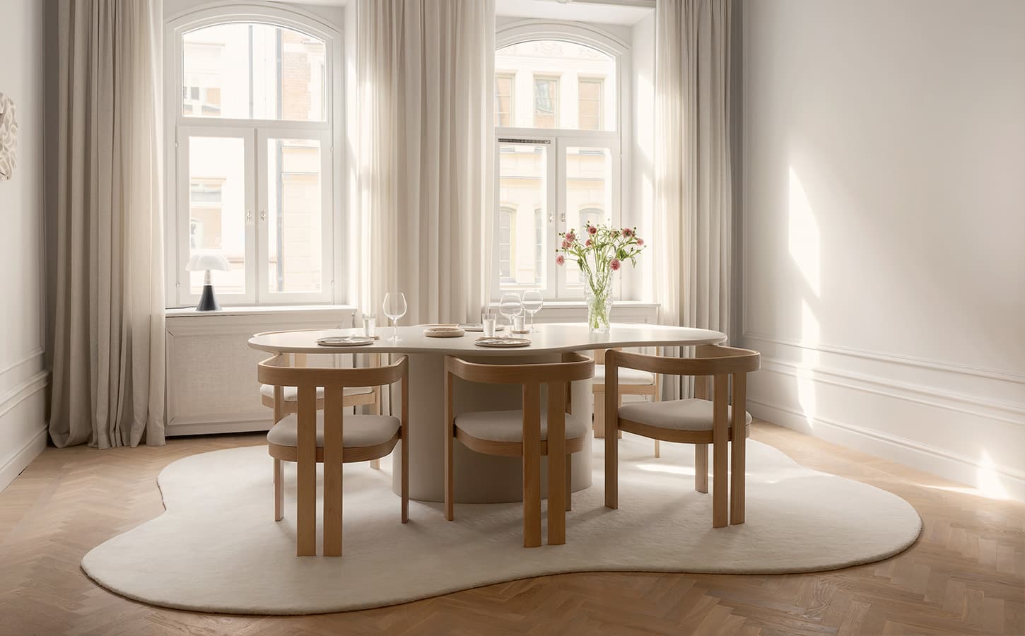 Stilrena matbord för middagsbjudningar