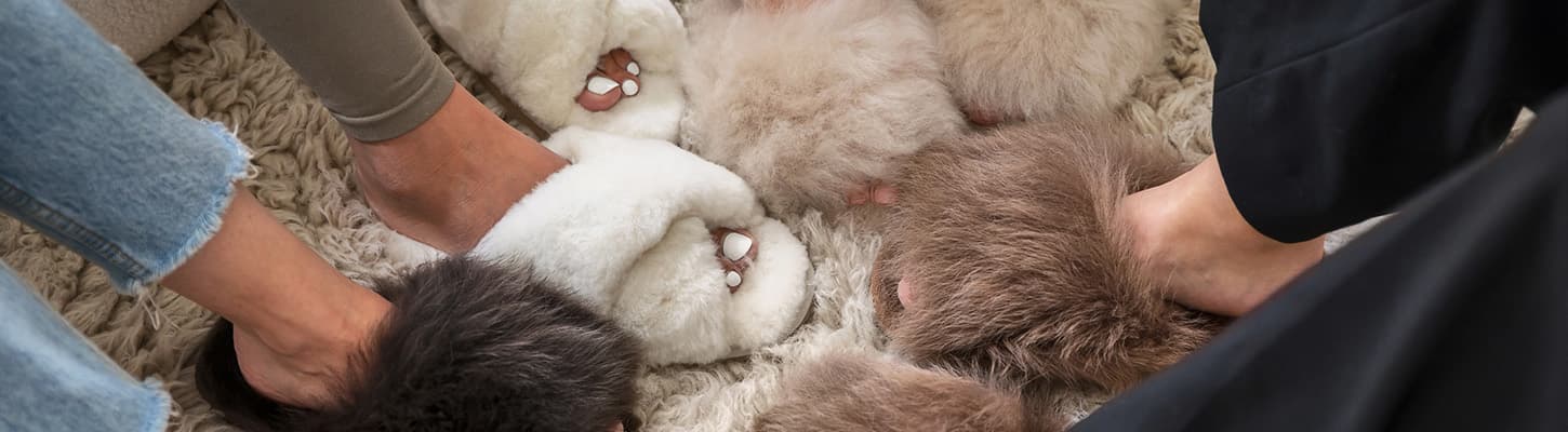 Shepherd tofflor i fårskinn till hela familjen